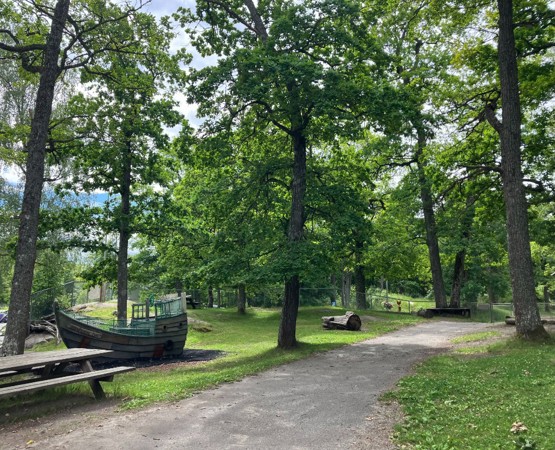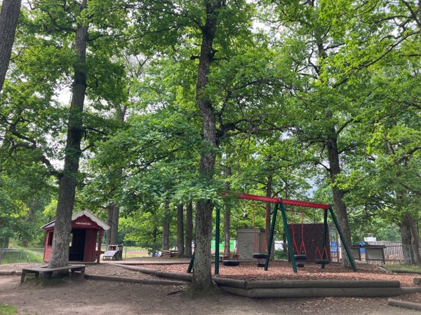 De store trærne gjør at vi alltid har det svalt og behagelig, også på varme sommerdager. I tillegg er de bolig for fugler, insekter og lav, så vi får bli kjent med og får følge med på naturen tett på.